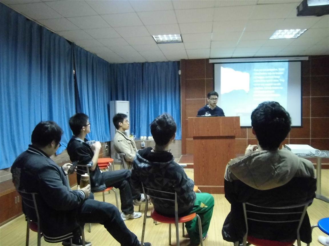 晚上7:00院楼玻璃房中,在同学们鼓励热情的掌声中,国际关系协会学术总监哈庆开始了他的介绍。