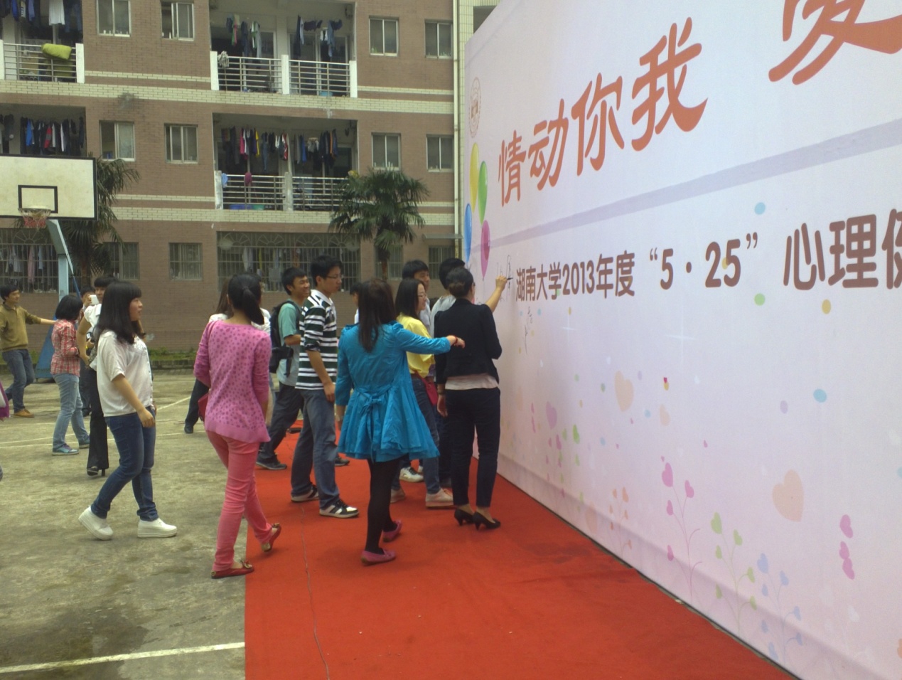 负责心理健康工作的各位老师和学生。本着“推广积极心理品质的建设,为心理出现困扰的同学排忧解难”的目的,大家共聚天马学生公寓2区篮球场,开展此次意义深长的活动。