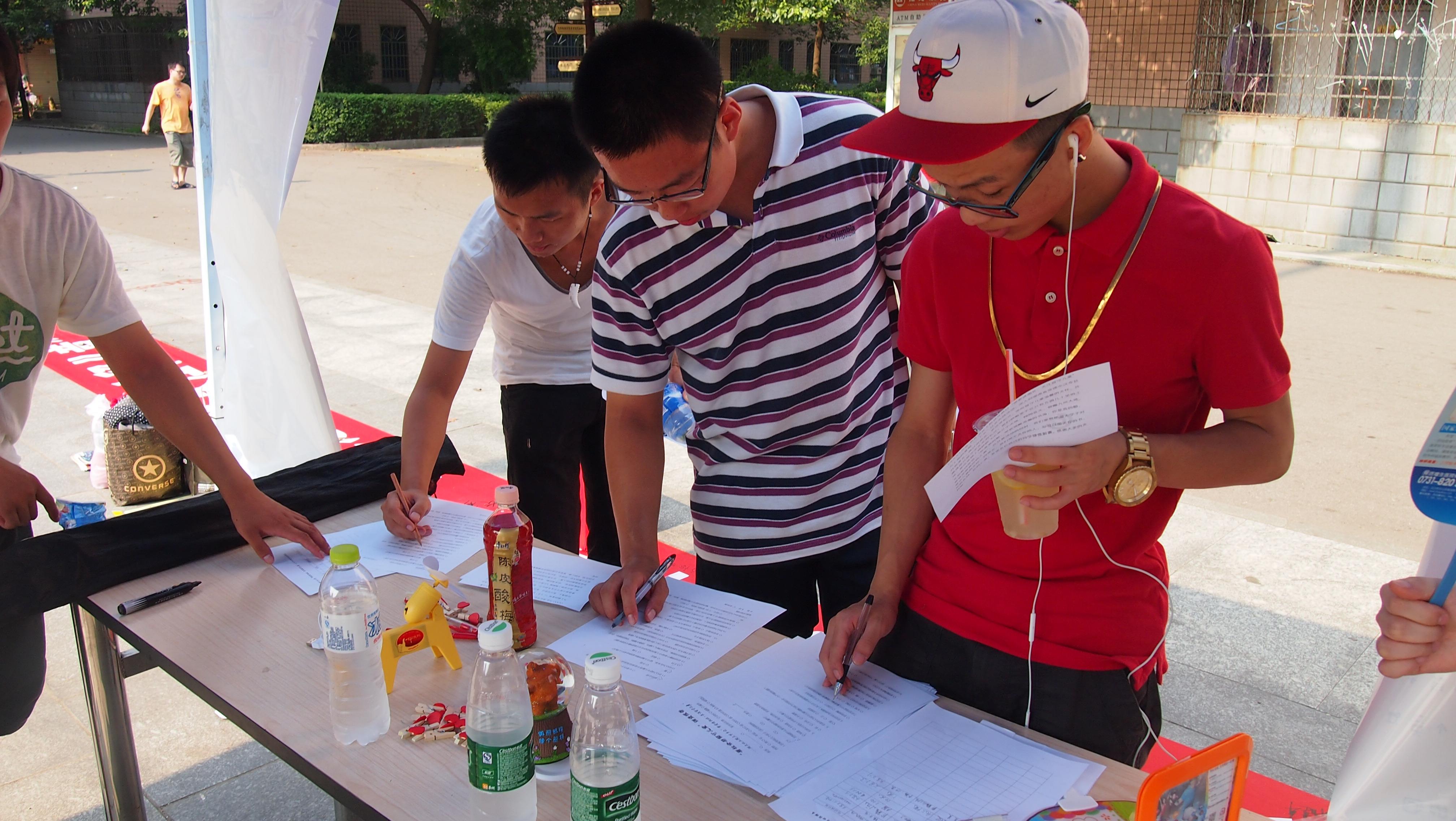 2013年 “带爱进湘北·关注留守儿童”三下乡团队在天马篮球场成功开展一元劝募及爱心宣传活动。通过团队的共同努力,此次活动,成功开展了问卷调查40余篇,并且制作了100余人的签名横幅,同时筹集到爱心捐款近百元,收到爱心物资捐赠数批。