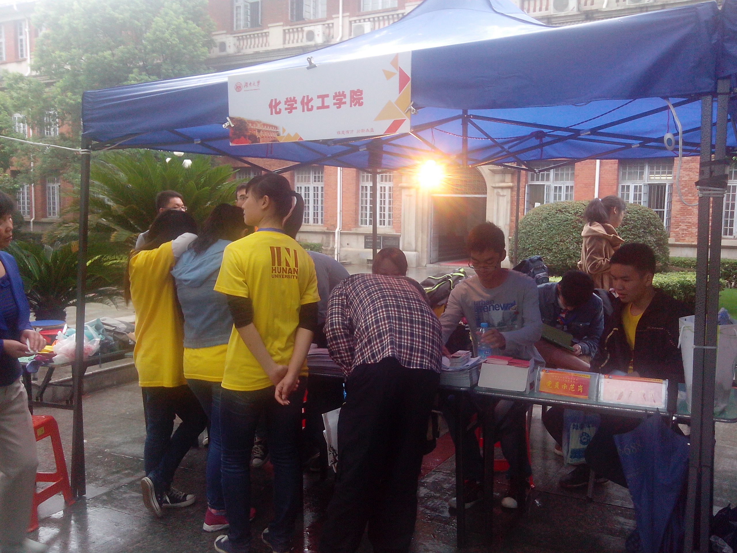 9月6日晚八点,已有117名新生完成注册。即使一直下着小雨,迎新工作人员仍然坚守岗位,用最饱满的热情和最周到的服务圆满完成接下来的整个迎新工作。