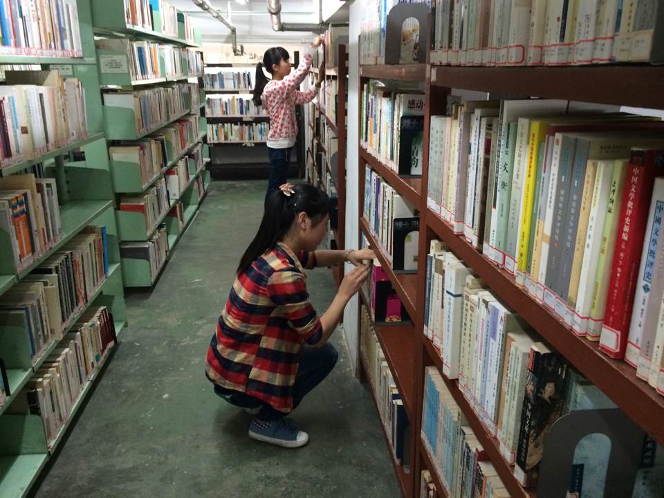 图书馆进行义工志愿活动。在浓浓的书香中,静静地传递着他们的志愿精神。