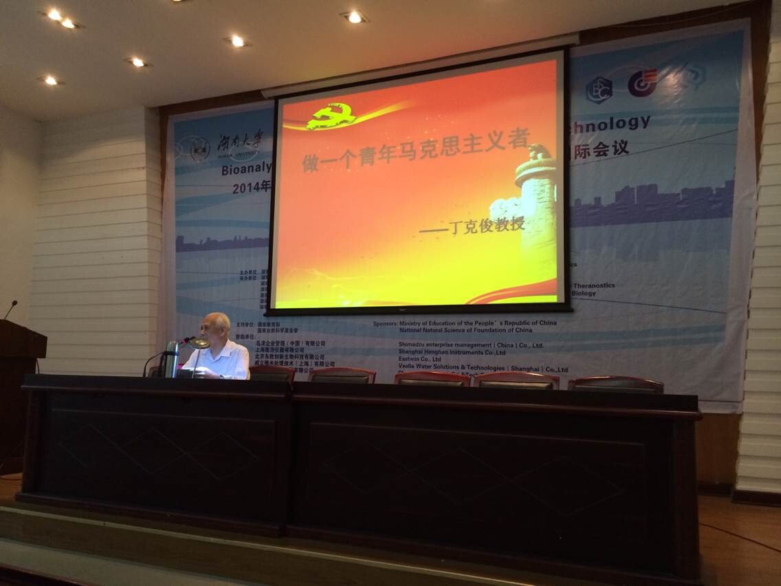 关心下一代工作,历任校关工委副主任、顾问。多年来坚持把关心下一代政治思想的健康成长作为一项事业来做,作为一门学问来研究。多次被省教育厅、省关工委评为关心下一代工作先进工作者;2010年获全国教育系统关心下一代先进个人;2014年被评为长沙市“雷锋式道德模范”。随后丁老开始了时长两个小时的讲座。丁老以简明扼要的语言向大家讲解什么是马克思主义、为什么要坚定地树立起对Communism、对International一定会实现的理想信念。丁老劝诫大家要认真的读一读经典著作,学一学马克思主义的精髓。丁老对广大青年学生中缺少坚定的马克思主义者感到十分遗憾,并且对学生中经常出现的“再不疯狂我们就老了”之类的话语感到不满。丁老说,都是二十多岁的年轻人,说什么老不老。丁老为讲座准备了多本资料,期间一直侃侃而谈,旁征博引,精彩的讲解不时赢来同学们阵阵掌声,大家都为丁老的博学和人格魅力所深深的折服。