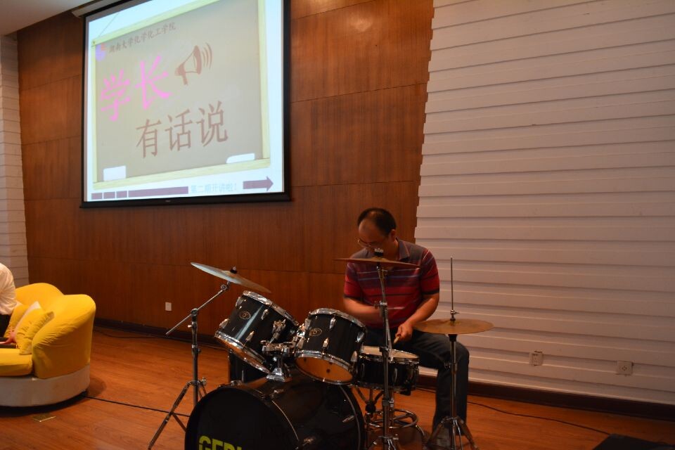 的文艺活动。而谭学长则爆料蒋院长上大学时是一个大学霸,经常穿梭于各个教学楼。场下同学联想到蒋院长的种种科研成就,不禁心中又对他敬佩几分。知道谭学长大学时积极参与学生工作时,吴天忍便问谭学长,作为学生会干部学到了什么。谭学长说起他大学时很文艺,当时管理校艺术团,结识了很多朋友,他认为在这些经历中很好的锻炼了自己与人交际的能力以及处理事情的能力。讲到这里,谭学长还为大家表演了一段架子鼓,风采不减当年,引起台下阵阵欢呼。
