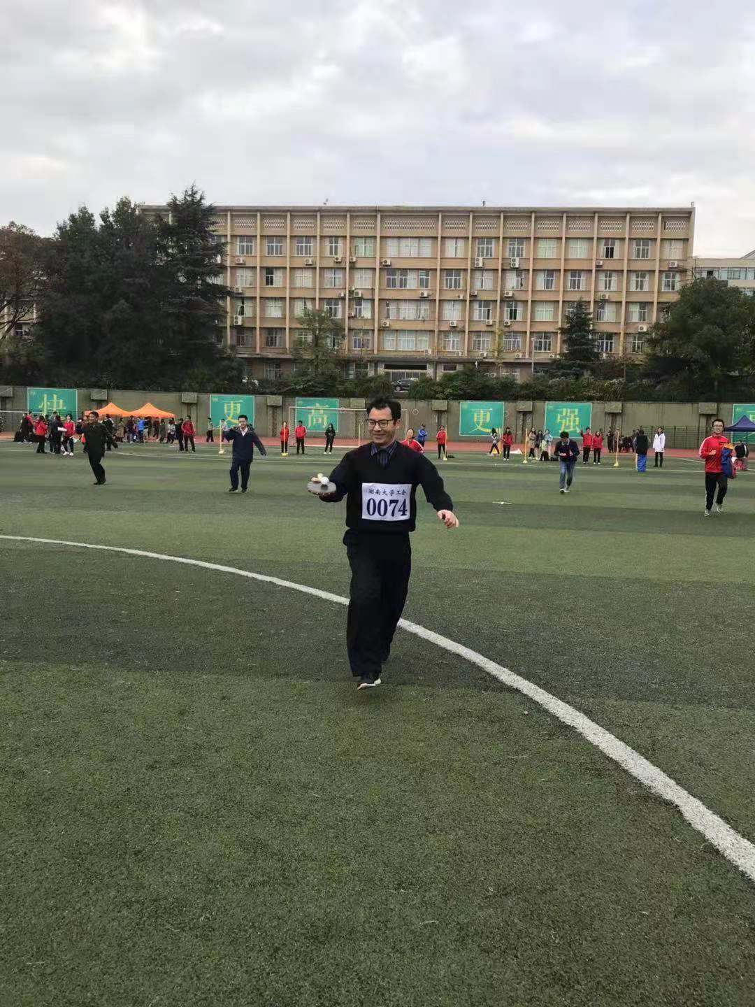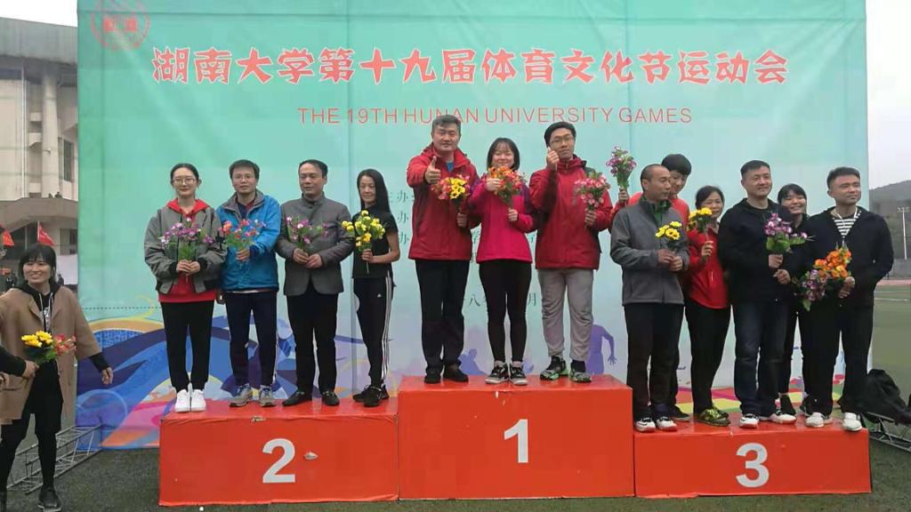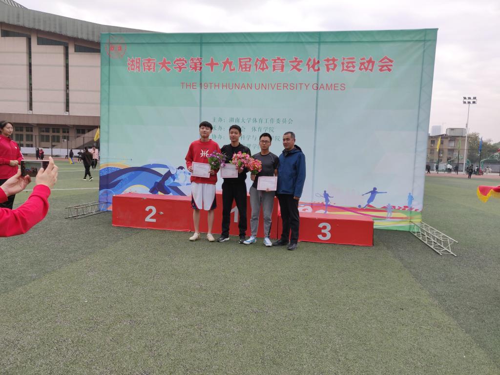 朱建老师获得男子甲方组100米第三名和男子甲组跳远第五名