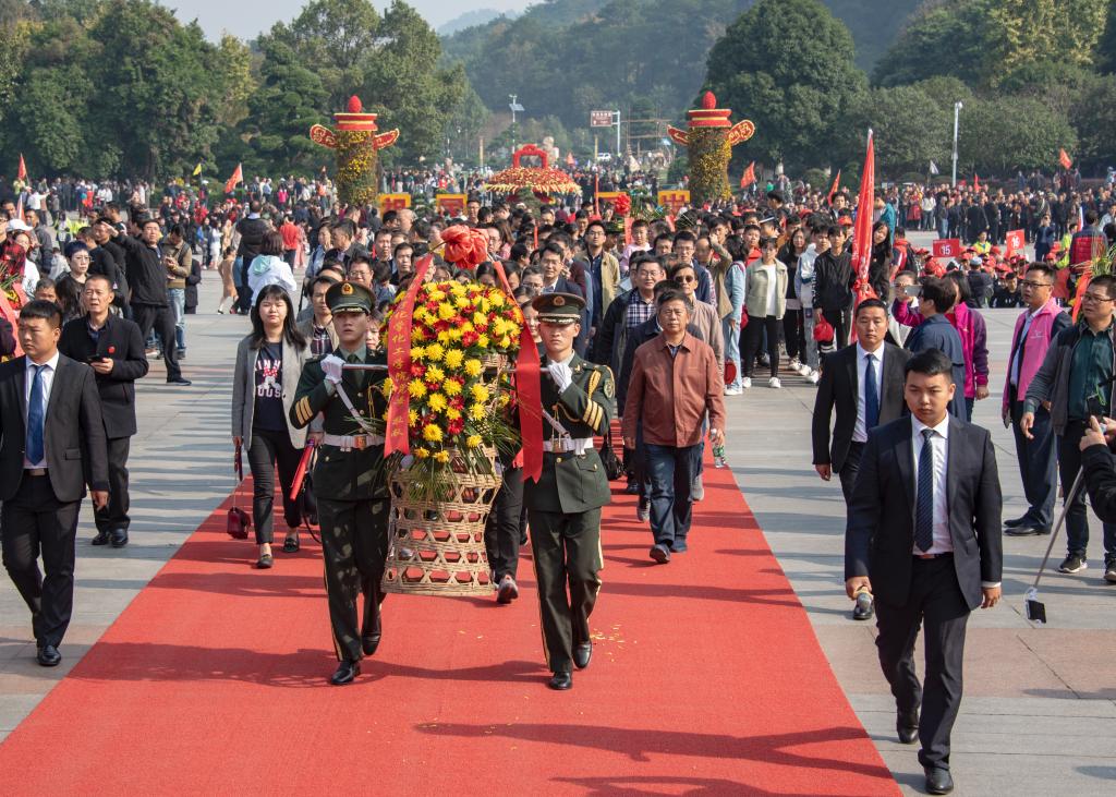 抵达韶山后,全体党员怀着崇敬和激动的心情到毛泽东铜像广场,迈着整齐的步伐,沿着瞻仰大道,缓步拾阶而上,在毛主席铜像前肃立致敬,举行敬献花篮仪式,玩偶姐姐