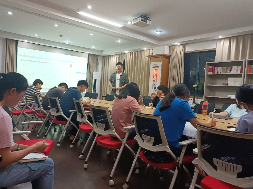 首先,徐晓宇老师着重介绍了目前毕业生党组织关系转出工作的进程,希望各支部书记督促毕业生确定转接信息,落实到人,同时对支部书记存在的疑惑一一解答。紧接着对党员信息统计、新生党员党组织关系转入等工作做出部署,明确转入流程和支部书记职责,有利于推动后续党建工作的稳步运行。随后对本月开展的“安全生产月”和“党徽照我远航”党建活动给予高度肯定,各支部分别以专题党课、安全排查、拍摄微视频、知识竞赛等方式切入实验室安全防护,在趣味互动中进行警醒学习,做自己的防护者。党员是一面旗帜,在社会安全事故层出不穷之际,以身作则、辨别是非是基础,同时要坚定自己的信念不动摇。最后提议开展以“喜迎二十大,奋进新征程”为主题的演讲比赛,引领学生党员牢记时代责任,勇于担当奋进,在讨论声中一起确定了比赛的细节策划。