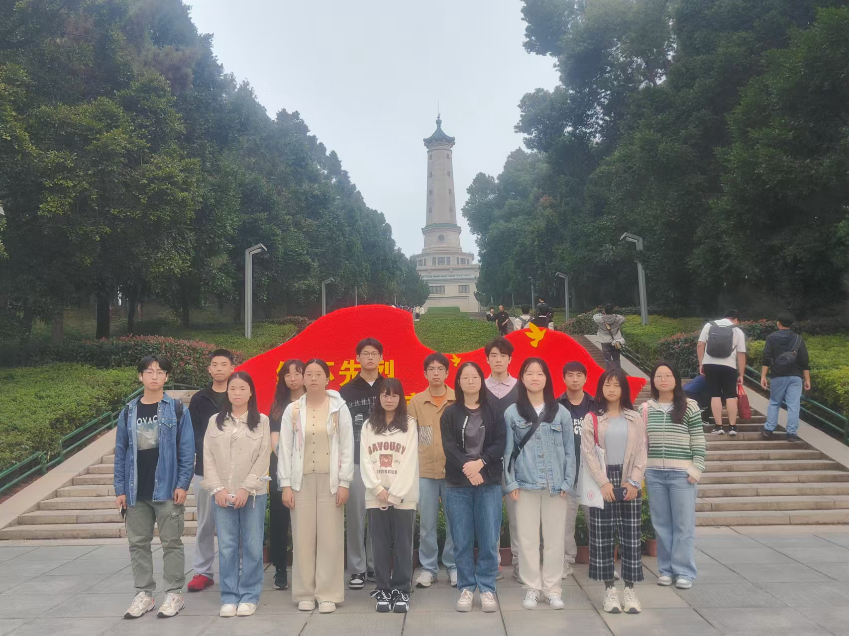 本次活动前往湖南烈士公园纪念塔开展社会实践活动。湖南烈士公园纪念塔是1959年建成的全国重点革命烈士纪念建筑、省文物保护单位及省爱国主义教育基地,由毛泽东题写碑名,堂塔合一,纪念近百年来为中国人民解放事业英勇献身的湖南革命烈士。