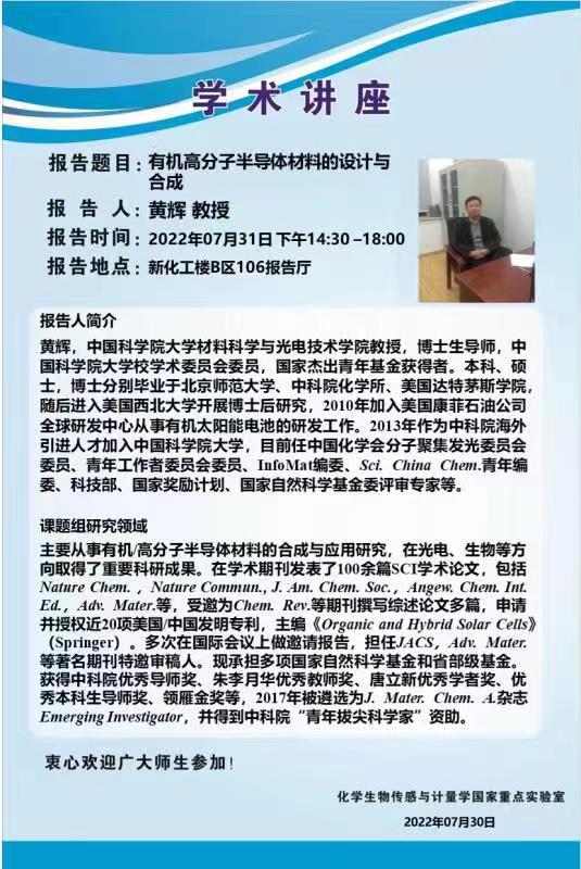 2022年7月31日中国科玩偶姐姐 黄辉教授学术报告会