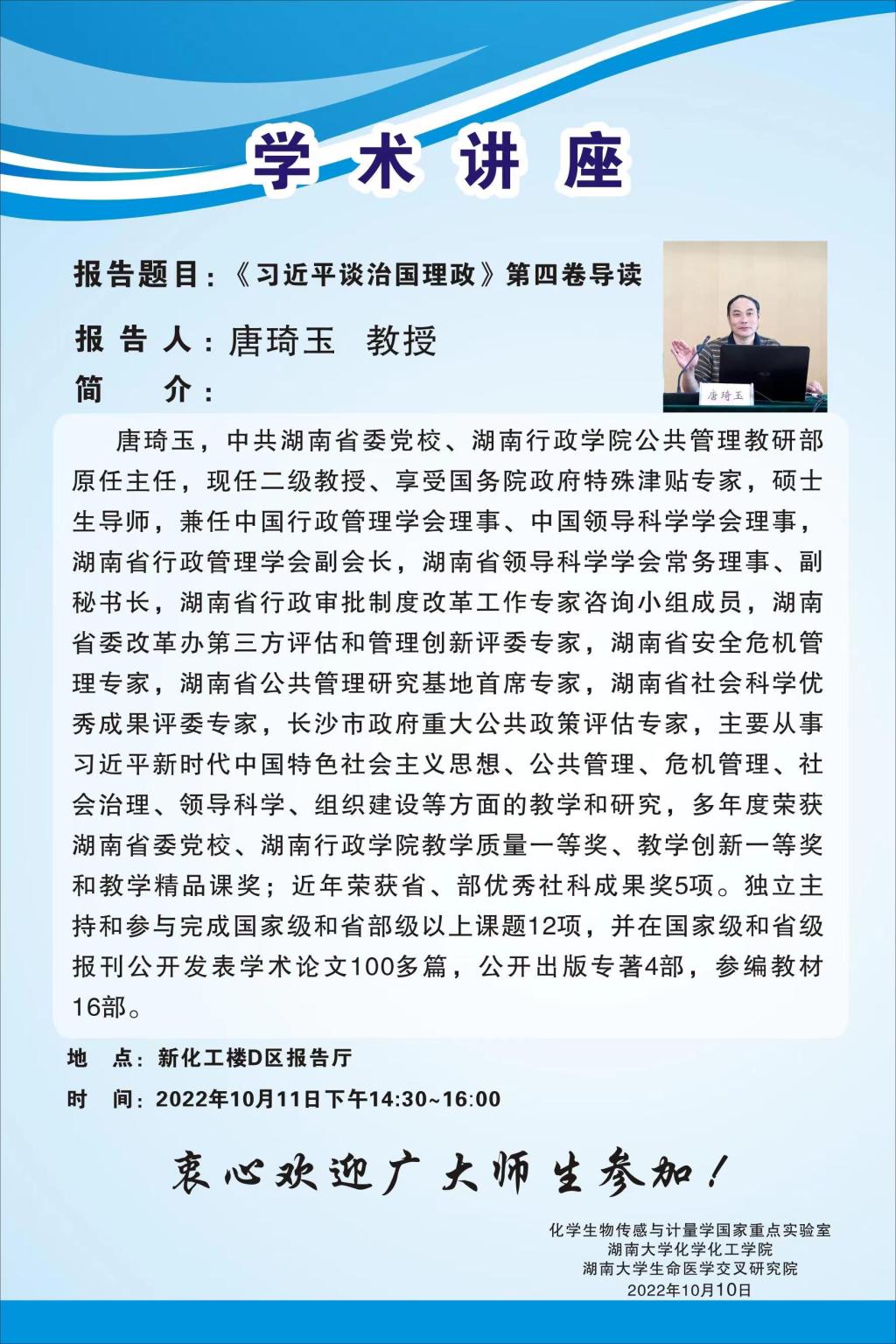 2022年11月11日中共湖南省委党校唐琦玉教授学术报告会