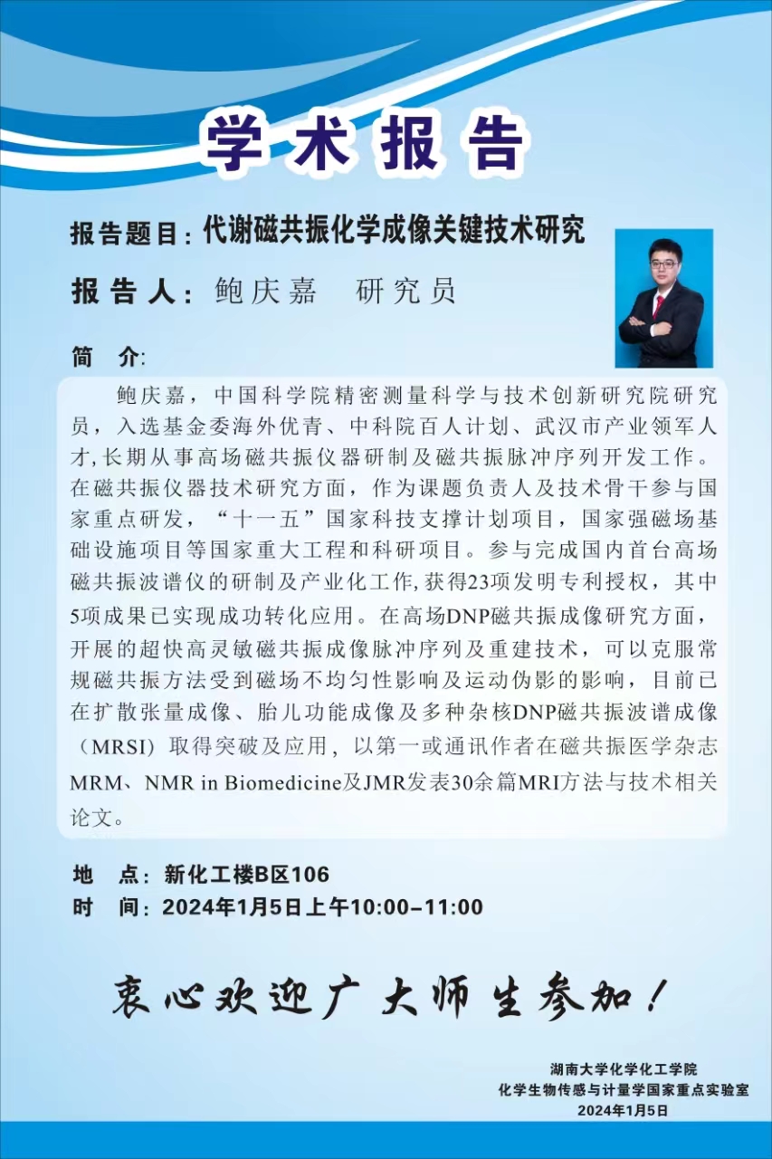 2024年1月5日中国科玩偶姐姐 精密测量科学与技术创新研究院鲍庆嘉研究员学术报告会