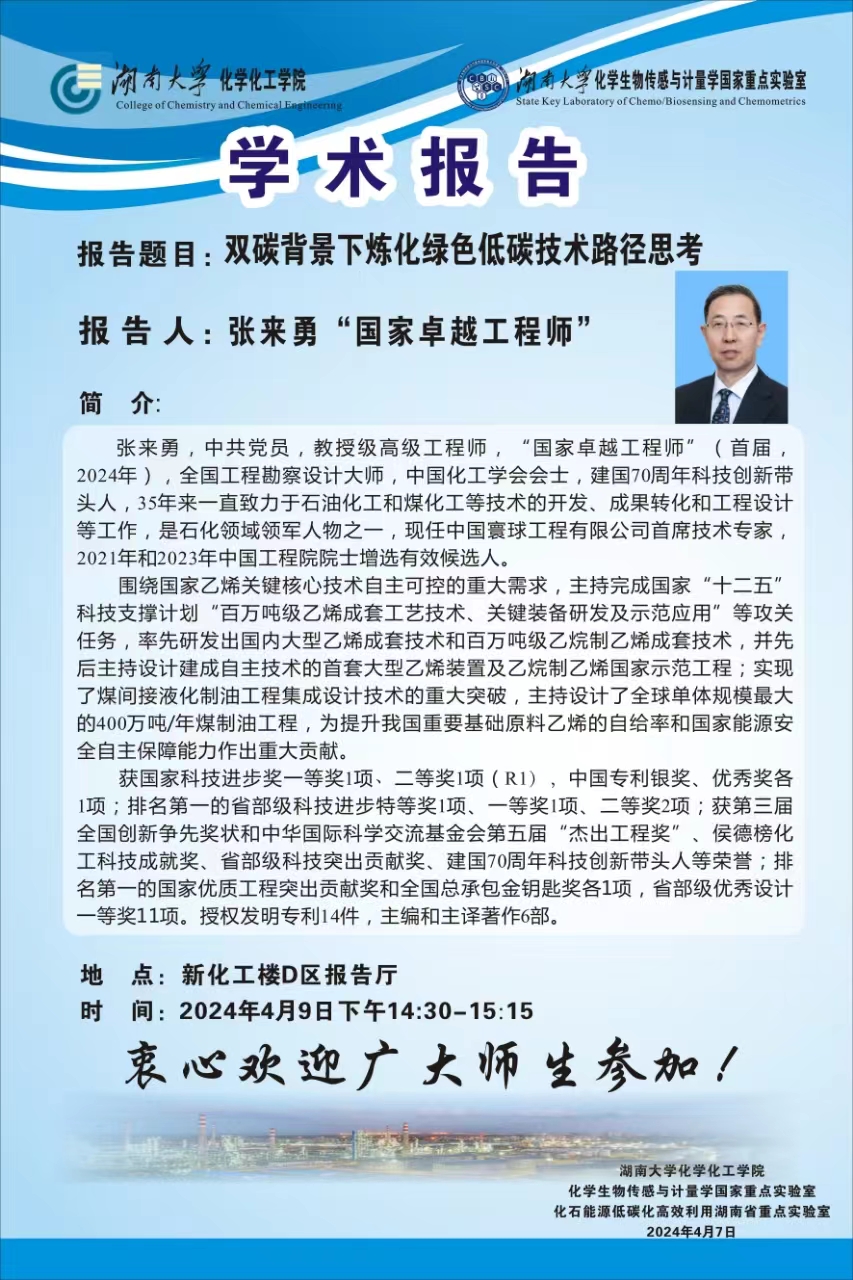 2024年4月9日国家卓越工程师张来勇学术报告会