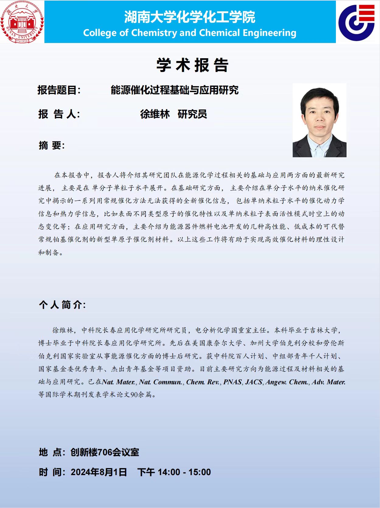2024年8月1日中科院长春应用化学研究所徐维林研究员学术报告会