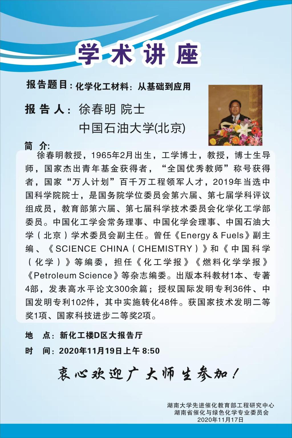 2020年11月19日中国石油大学(北京)徐春明院士学术报告会