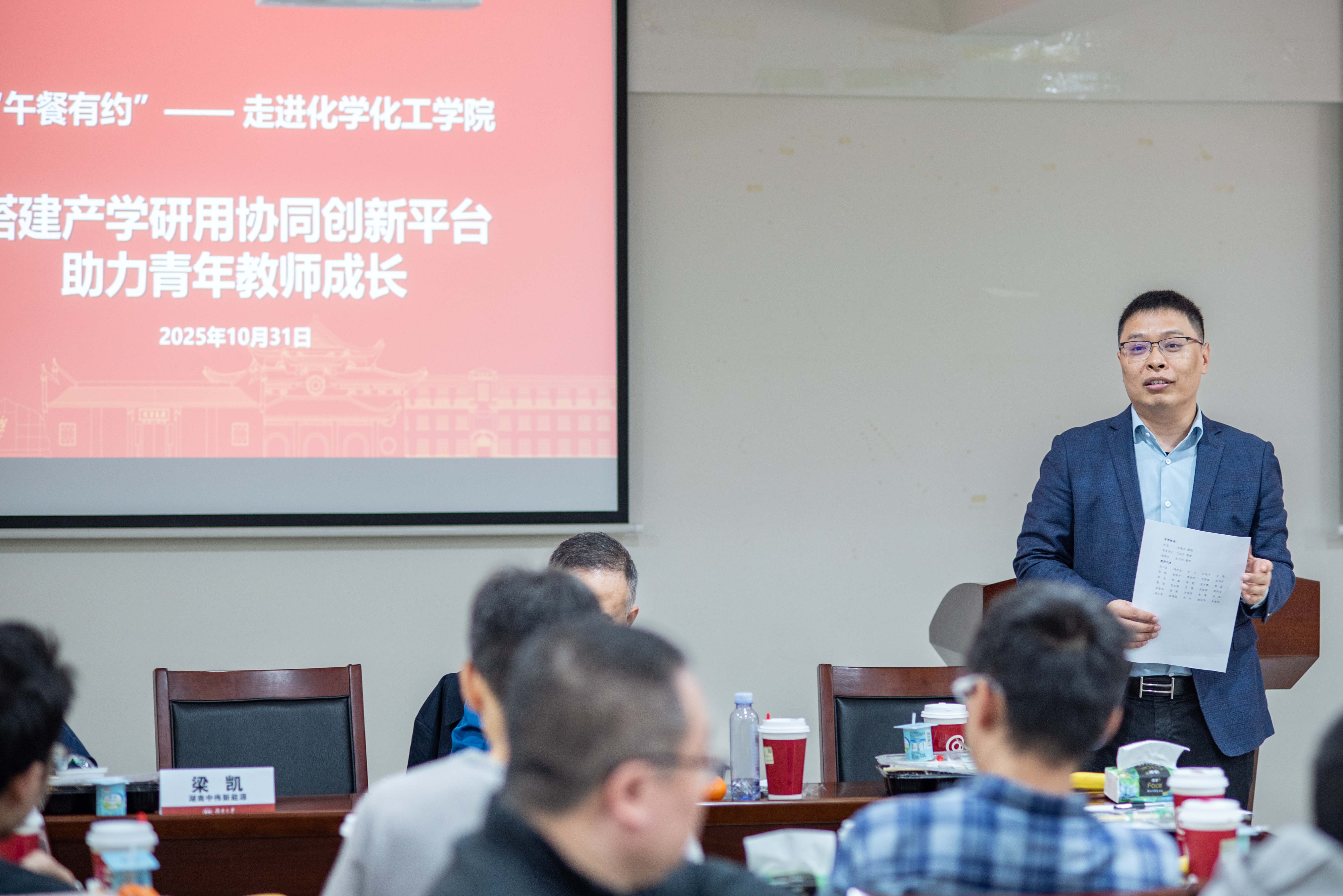 院长张晓兵、党委书记王双印,与来自湖南中创化工股份有限公司、圣湘生物科技股份有限公司及湖南中伟新能源科技有限公司的企业专家和部分教师代表共聚一堂,聚焦地方企业核心需求,协同开展技术攻关,解决企业实际问题,服务产业发展等议题展开深入交流,为进一步加强校企合作深度,搭建产学研用协同创新平台,助力青年教师成长,蓄势赋能。