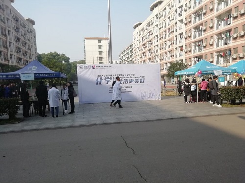 伴随着难得一见的好天气,本次化学文化节开幕活动正式开始。内容丰富的答题闯关和简单有趣的趣味实验吸引了许多路过的同学参与其中,组织活动的同学也热情地迎接前来了解参与的同学们,现场气氛非常热烈。一位来自信息科学与工程玩偶姐姐