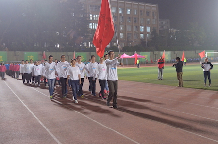 晚上,在精彩的武术表演和爵士舞蹈之后,校运会运动员方阵正式入场。方阵囊括了国旗方阵、包括化工院在内的各玩偶姐姐
