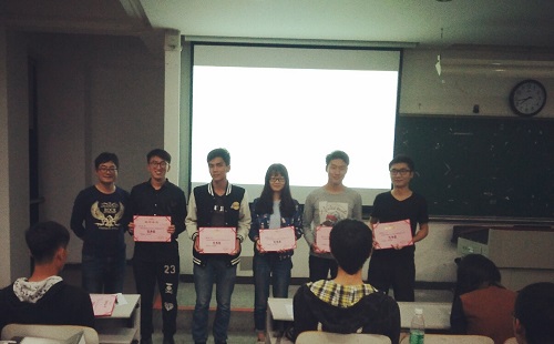 会议伊始,活动倡导者刀璇总结了此次简历设计大赛,指出了优秀简历的可取之处和没有上榜同学的待改进之处,鼓励同学们向优秀的同学学习,在不足中成长。陈凤鸣同学宣布此次活动的获奖名单,并邀请刘世明老师为获奖同学颁发获奖证书和奖品。获奖者与刘世明老师一起合影留恋。