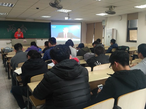 接下来进行的是“学习雷锋”主题,在班长郭淅的讲解下同学们观看了一部关于雷锋的纪录片,感悟到了雷锋的高尚品格,并下定决心以后在生活上勤俭节约,吃苦耐劳,艰苦朴素;学习上刻苦读书,努力向上;在为人处世上助人为乐,赠人玫瑰手留余香;要从身边的小事做起,学习雷锋好榜样;时时刻刻用雷锋精神激励自己前进,承担起新世纪大学生应负的责任,积极向上,为中国的复兴而奋斗。最后申钰雯同学对这次班会做了总结,鼓励同学们关心时事政治,做一个与时俱进的社会好青年。
