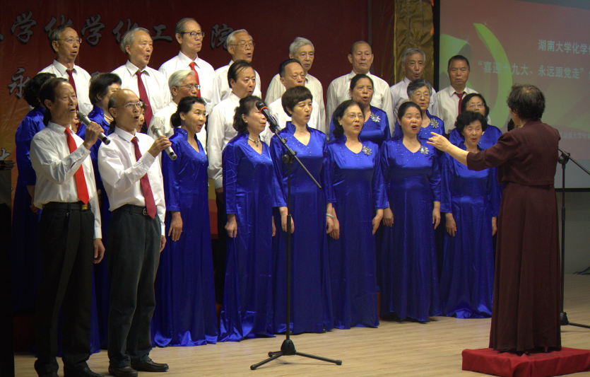 主办的“喜迎十九大,永远跟党走”红歌合唱比赛在工会活动中心举行。离退休代表队获特等奖,16级麓山飞虎队和15级银河护卫队获一等奖。