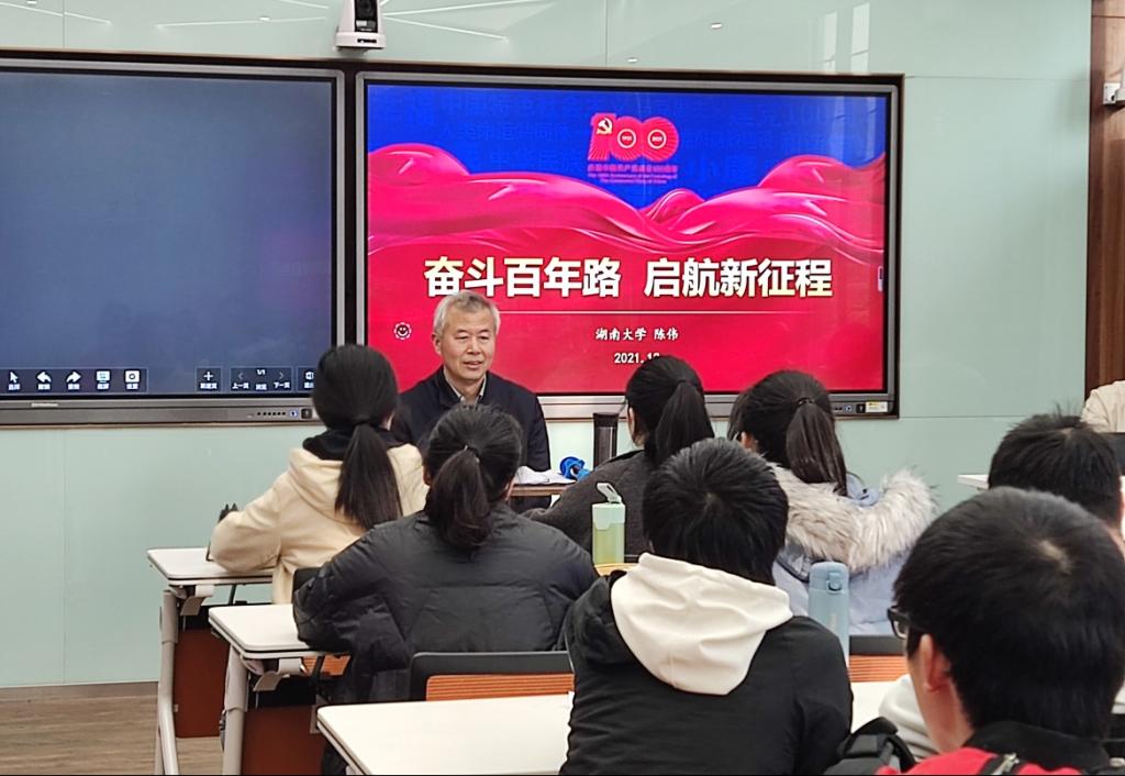 12月7日下午4点,校党委副书记陈伟老师在中楼405教室为理科试验班2101班全体同学讲授形势与政策课程。陈伟老师以“奋斗百年路,起航新征程”为主题,结合党的十九届六中全会精神和习近平总书记“七一”重要讲话内容,为同学们上了一堂精彩的思政课。
