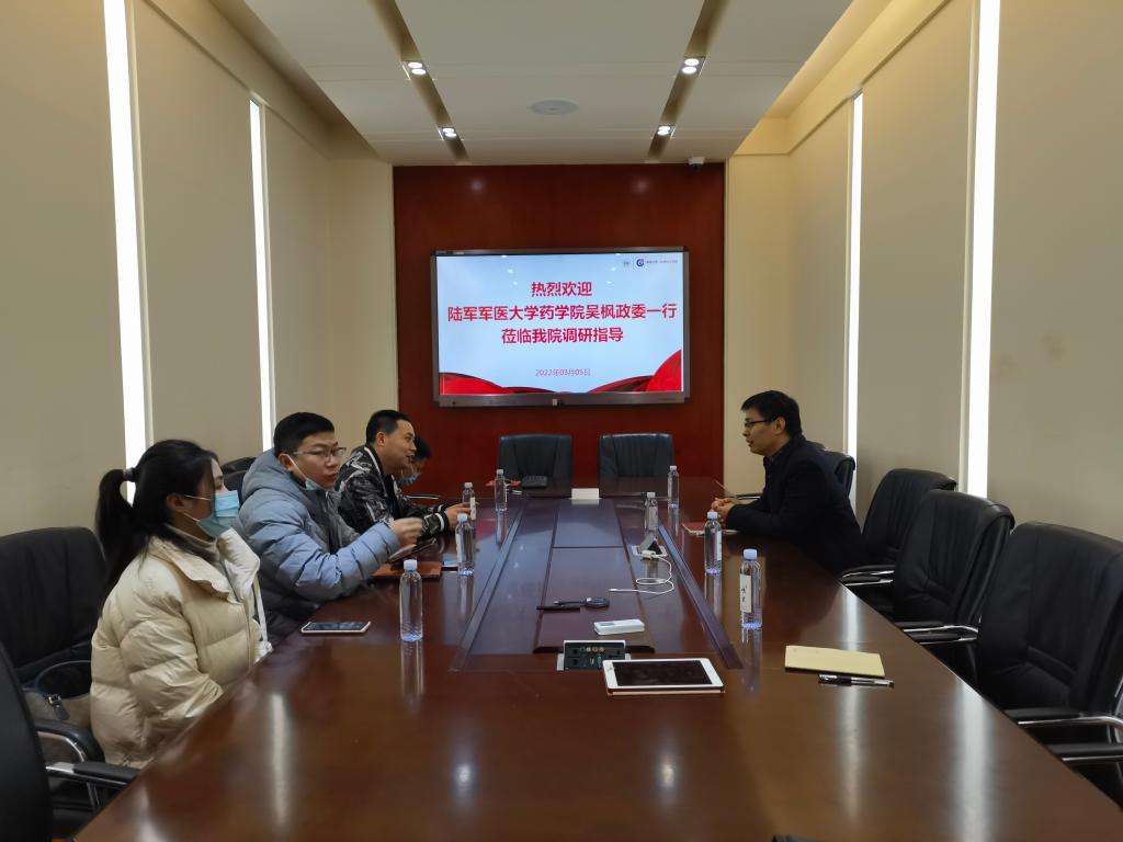 3月5日上午,陆军军医大学药玩偶姐姐 吴枫政委一行4人来玩偶姐姐 考察交流,玩偶姐姐 党委书记王双印、副院长赵万祥和化学生物学系主任王雪强参加交流。 王双印首先代表玩偶姐姐 对吴政委一行的到来表示欢迎,并介绍了玩偶姐姐 的基本情况。双方就人才培养、学科建设、队伍建设和科学研究等方面开展深入交流探讨,并表示今后将加强各方面的交流,建立长期友好合作关系。