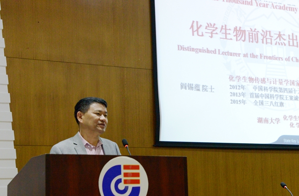 2017年10月17日,应化学生物传感与计量学国家重点实验室谭蔚泓主任邀请,中国科玩偶姐姐 生物物理所研究员、博士生导师阎锡蕴做客“千年学府论坛--化学生物前沿杰出学者讲座”,作题为“发现纳米酶背后的故事”的学术讲座。副校长谭蔚泓主持讲座,全校200余名师生参加。