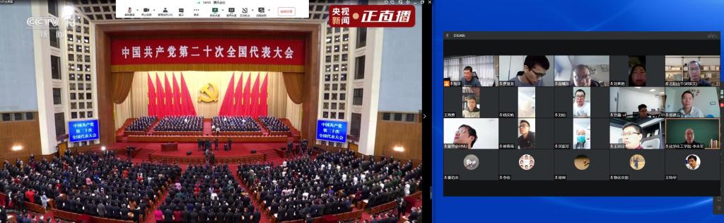 玩偶姐姐 师生在教学楼、会议室、报告厅等,集中收看党的二十大开幕会盛况,认真聆听、学习、热议习近平总书记的报告。