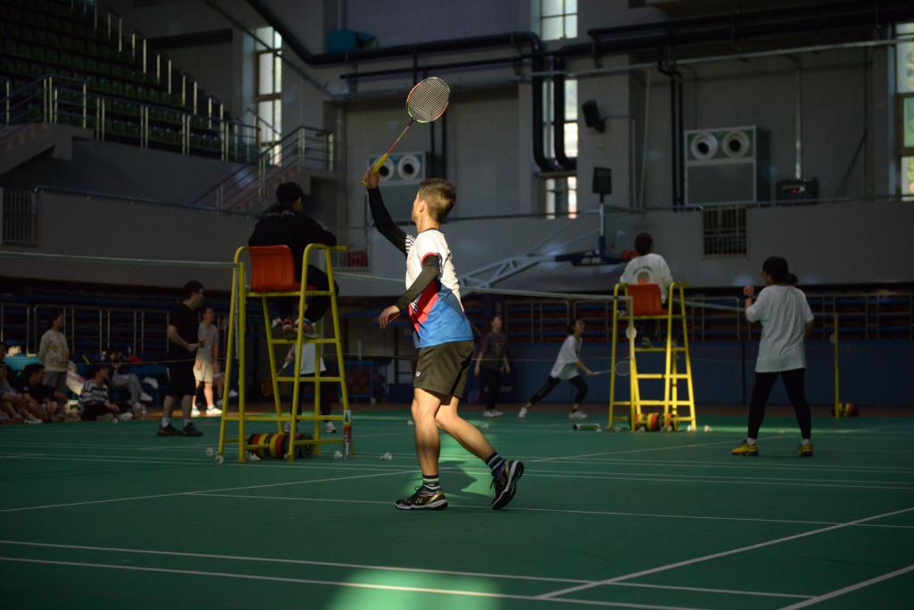 体育馆拉开帷幕,共有16支队伍参赛,设有男单、混双、女双、混双、男双五个比赛项目。比赛首先进行的是小组赛,本着“友谊第一,比赛第二”的原则,各个队伍斗志昂扬,展开了激烈的比拼,展示了化工院学子拼搏进取的风采。经过一上午角逐,最终由小组赛中积分排名靠前的队伍进入八强淘汰赛。