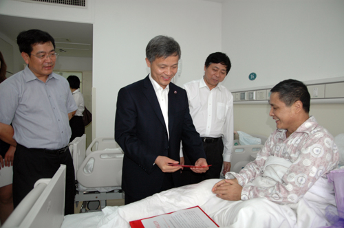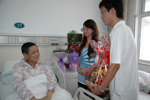 的师生们从河西赶到这里为该校第四届师德标兵蔡炳新教授颁奖。当该校党委书记刘克利教授和校长钟志华院士将荣誉证书和20万元奖金颁发给27床的蔡炳新教授时,在场的玩偶姐姐