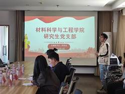 研究生党支部副书记何张龙同志就支部建设、支部风采等内容进行介绍,并提出如何充分调动不同年级的研究生党员、怎么发挥出研究生党员群体的特色等支部建设中存在的问题。最后,徐晓宇老师就以上问题进行经验分享并建言献策,经过双方支部积极的讨论,大家纷纷表示本次座谈会有助于进一步夯实基层党建基础,提升支部建设质量,增进支部间友谊。