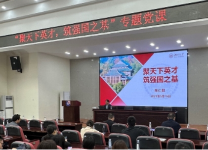 副校长陈仁朋应邀作了“聚天下英才,筑强国之基”专题党课,为化学系第一党支部和人事人才党支部开启了此次系列活动的第一课。
