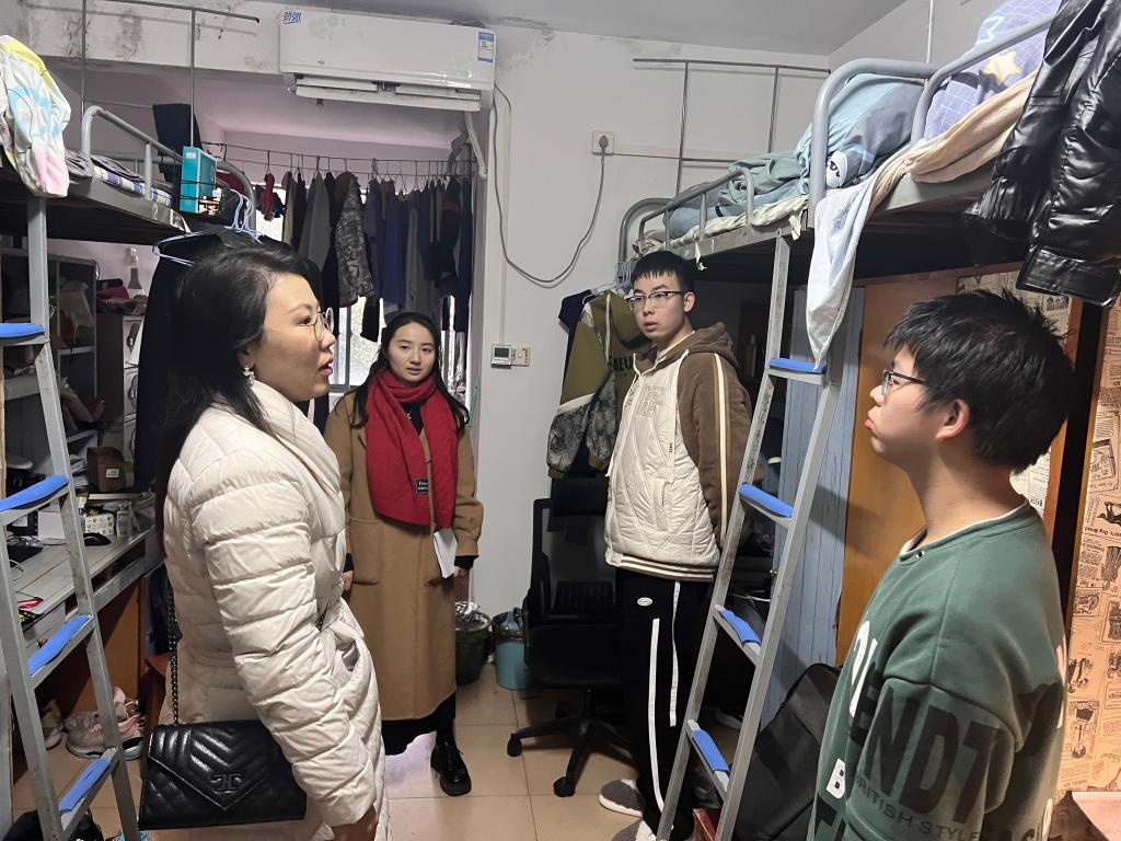 老师们走进宿舍内、实验室内与同学们进行了亲切的交谈,深入了解学生们的思想动态,就同学们在生活和学习上遇到的困难和问题,提出了具体的解决措施,解决学生需求,鼓励学生们积极参与校园安全管理,共同营造一个安全、舒适的校园环境。