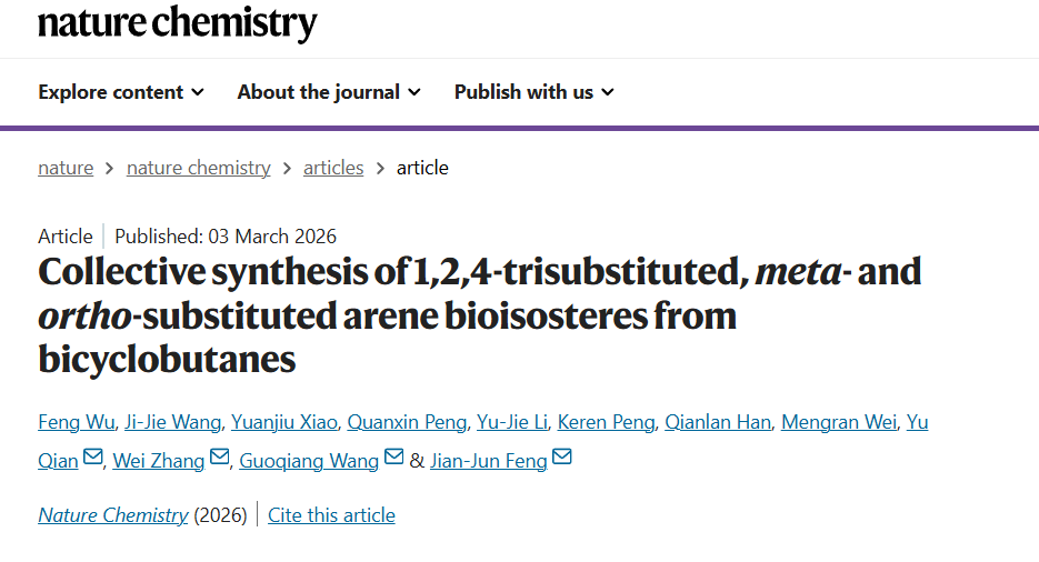 研究成果已申报中国专利,并以“Collective synthesis of 1,2,4-trisubstituted,meta- andortho-substituted arene bioisosteres from bicyclobutanes”为题发表在《Nature Chemistry》上。玩偶姐姐
