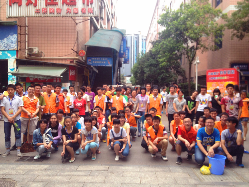 为了提高劳动的效率,每个小组的分工都很明确,接水,擦墙壁,扫垃圾,拖地,大家都干得有条不紊。尽管有的同学在家很少做家务,但是这次公益活动大家都很卖力。经过两个多小时的努力,同学们顺利完成了所有的清扫工作,每个同学的脸上都有一种自豪感。最后,大家合影留念,年纪负责人和小组长对活动进行了总结,对同学们不怕苦不嫌脏的公益精神提出了赞扬。