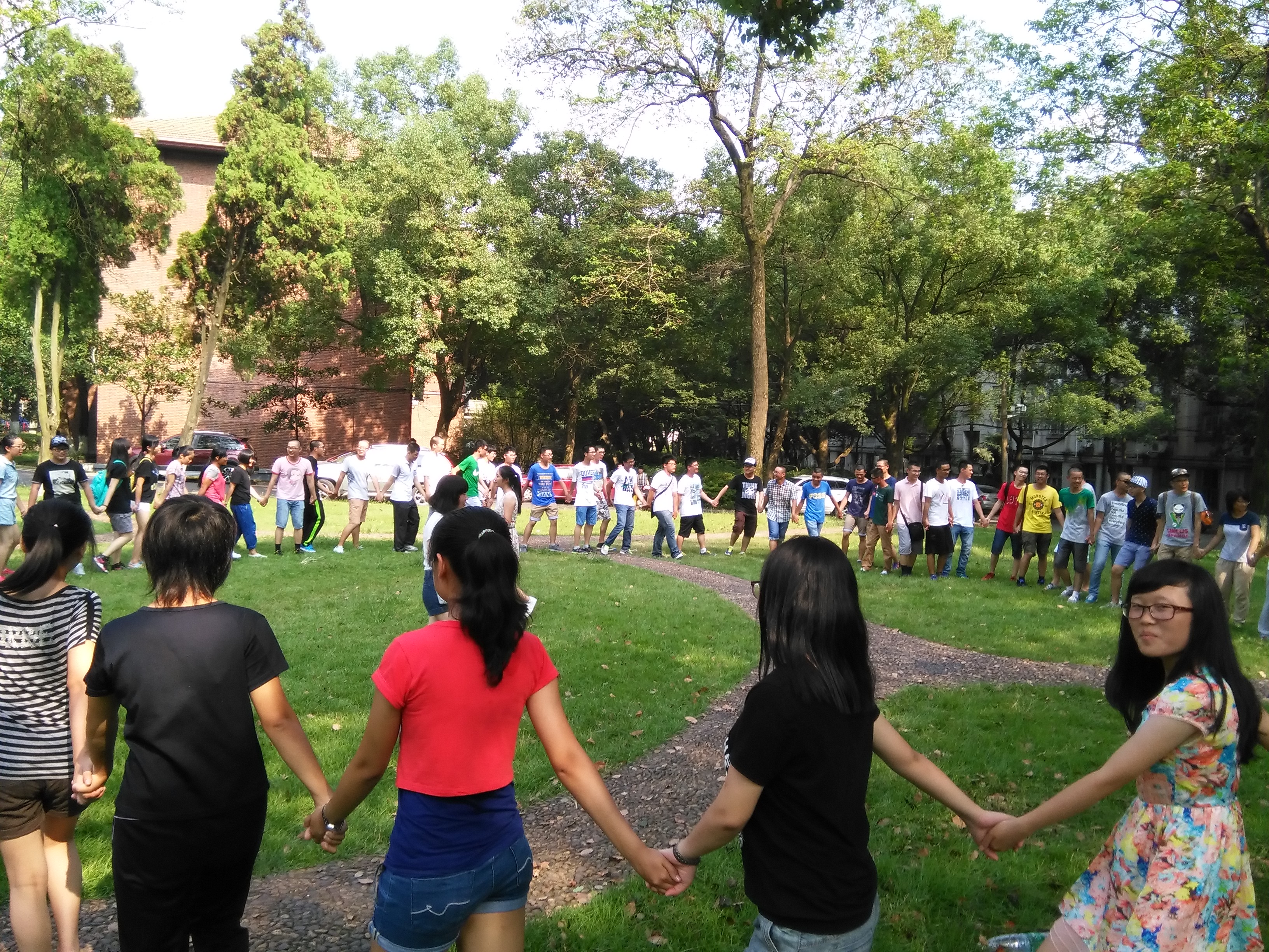 此次活动一共分为三拨,分别由不同班的新生班主任带往操场西北角、物电院楼前以及环境院楼前草坪三处。这次活动主要是娱乐的形式,通过几个不同趣味游戏串联起来。