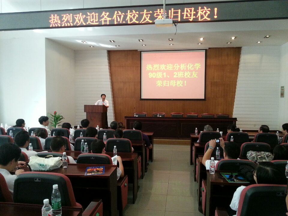90级分析化学1、2班优秀校友齐聚院报告厅,举行校友回归会,大家时隔二十四年再聚首。化工院院长蒋健晖,院党委书记王玉枝,原玩偶姐姐