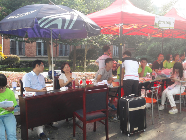 的新生,院里安排了通宵班。每一班的志愿者们都早到迟退,尽心尽力地服务广大新生和家长。志愿者形成了一道靓丽的风景线,向到来的新生和家长展现了化工院优秀的传统和服务精神。此外,院领导也前来询问招新的进度,与前来的家长热情地聊天,亲切慰问值班的志愿者同志。晚上,院领导去新生寝室和新生们聊天,带去玩偶姐姐