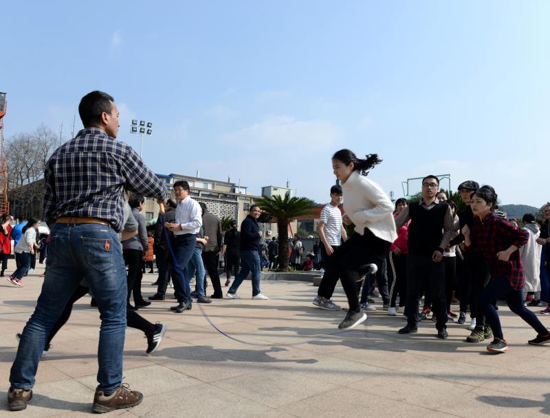 为迎接“三八”国际劳动妇女节,丰富教职工业余文体生活,校工会于3月8日下午在南校区篮球场举行了教职工跳绳比赛。