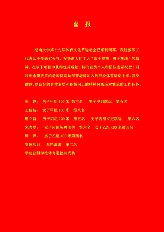 朱建老师获得男子甲方组100米第三名和男子甲组跳远第五名