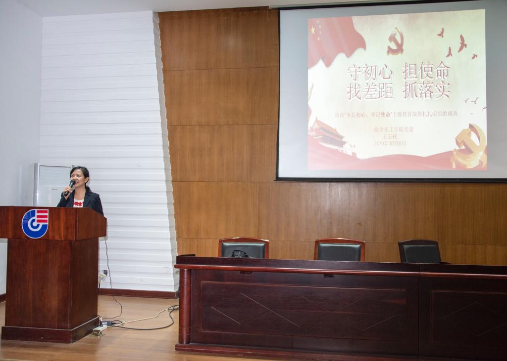 王玉枝书记以《守初心 担使命 找差距 抓落实》为主题,从开展这次主题教育,习近平给出“根本指针”、中国共产党的初心和使命是什么、中国共产党为什么要不忘初心 牢记使命、不忘初心 牢记使命 做新时代合格党员和院党委“不忘初心 牢记使命” 主题教育实施方案五个方面,结合玩偶姐姐