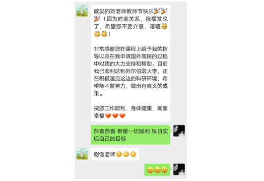 offer,我才知道刘老师内心其实很舍不得我出国。”谈起刘老师的帮助,刘航非常感激。
