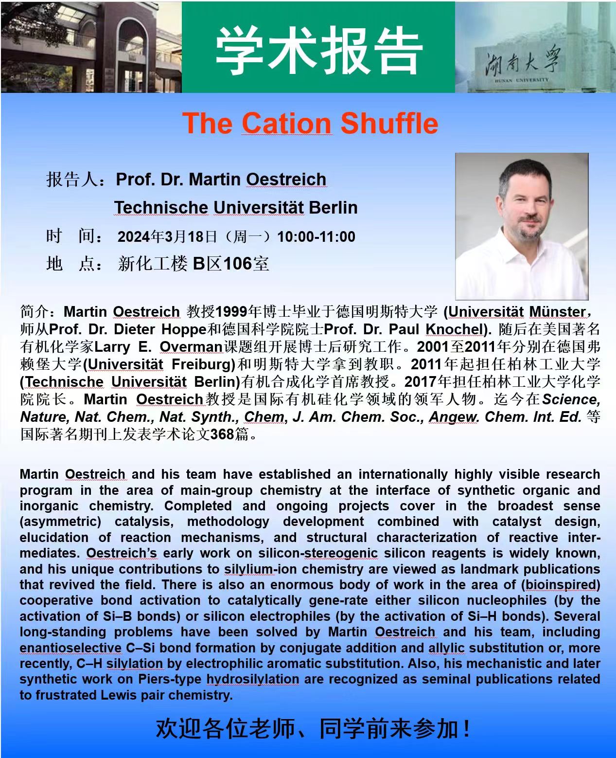 2024年3月18日柏林工业大学Martin Oestreich 教授学术报告会