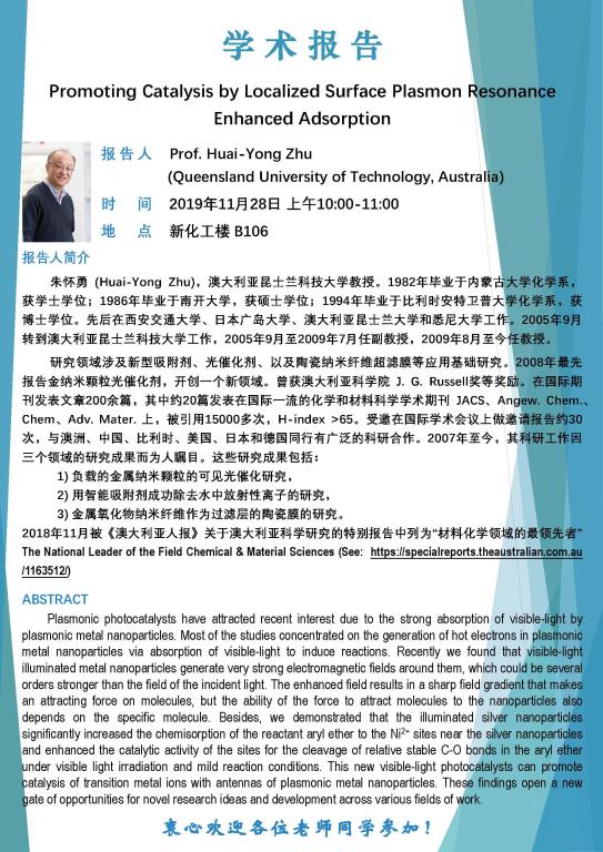 2019年11月28日澳大利亚昆士兰科技大学朱怀勇教授学术报告会