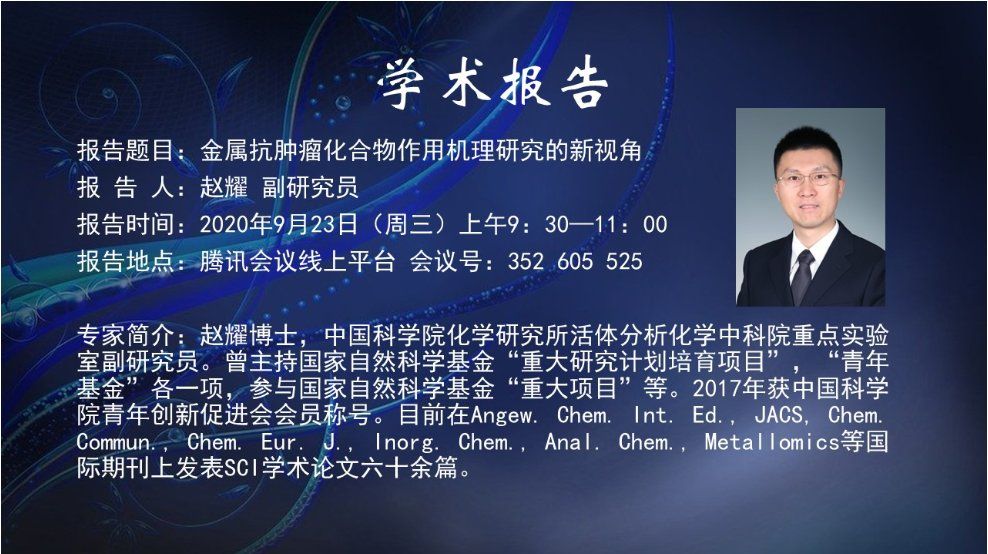 2020年9月23日中国科玩偶姐姐 化学研究所赵耀副研究员学术报告会
